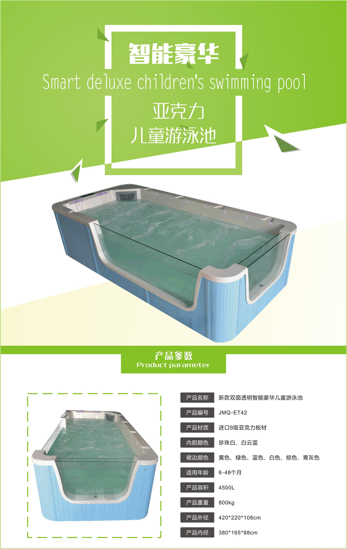 新款2.2 x4.2米双面透明豪华智能儿童游泳池